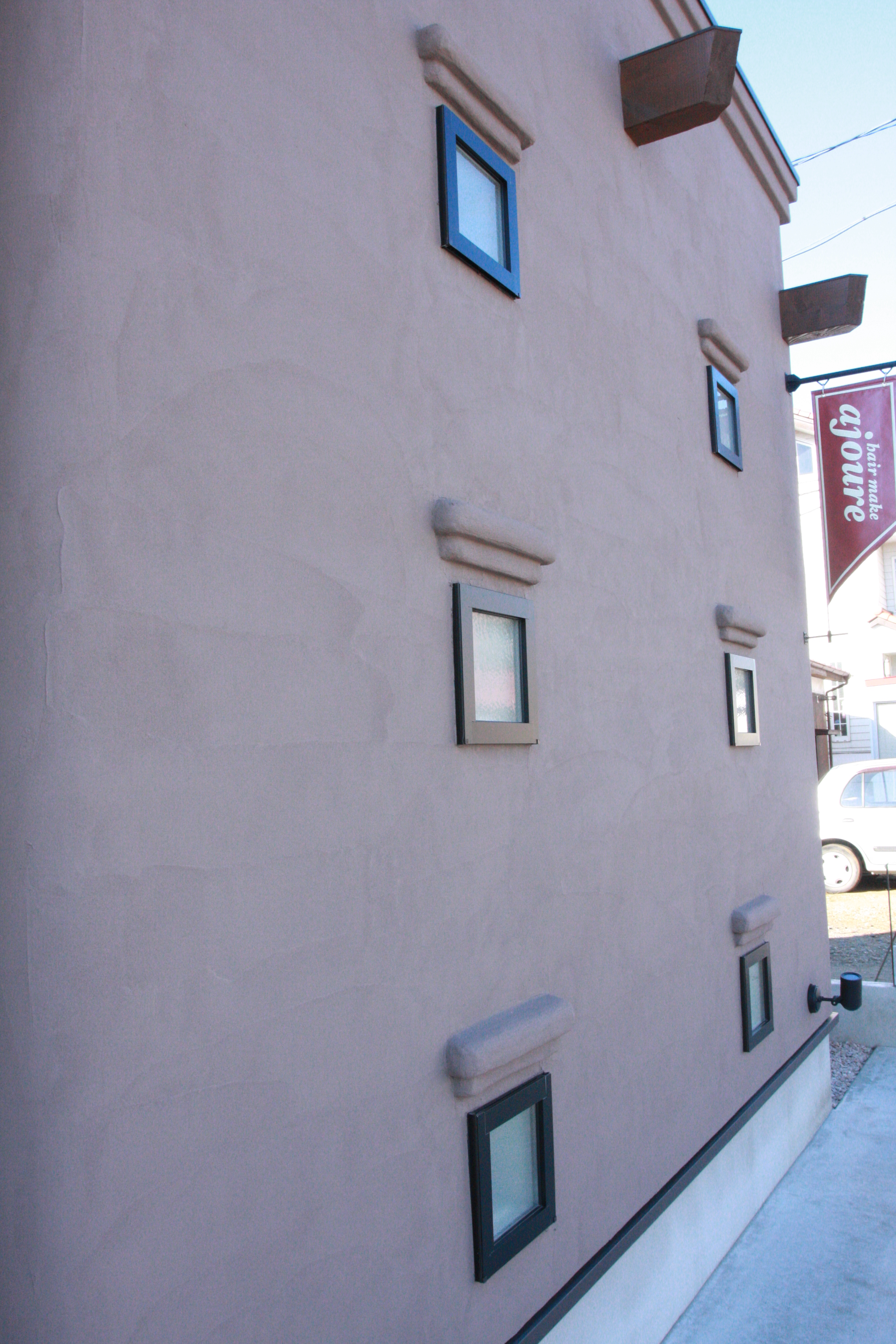・メインコンセプト「年月がたつごとに、あじが出てくる建物」ここは美容室なのだ。飾りではない。ショールームでもない