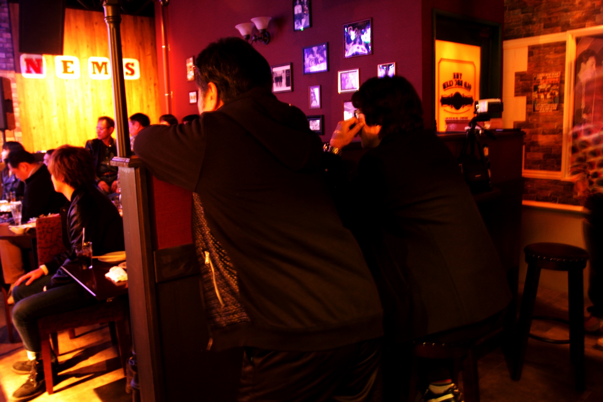 須田氏:ステージのトナリのDJブースの背面にある「NEMS」の文字もOさんが、どうしても、と。ビートルズと深い関わりのあったレコード店の名なんだって。